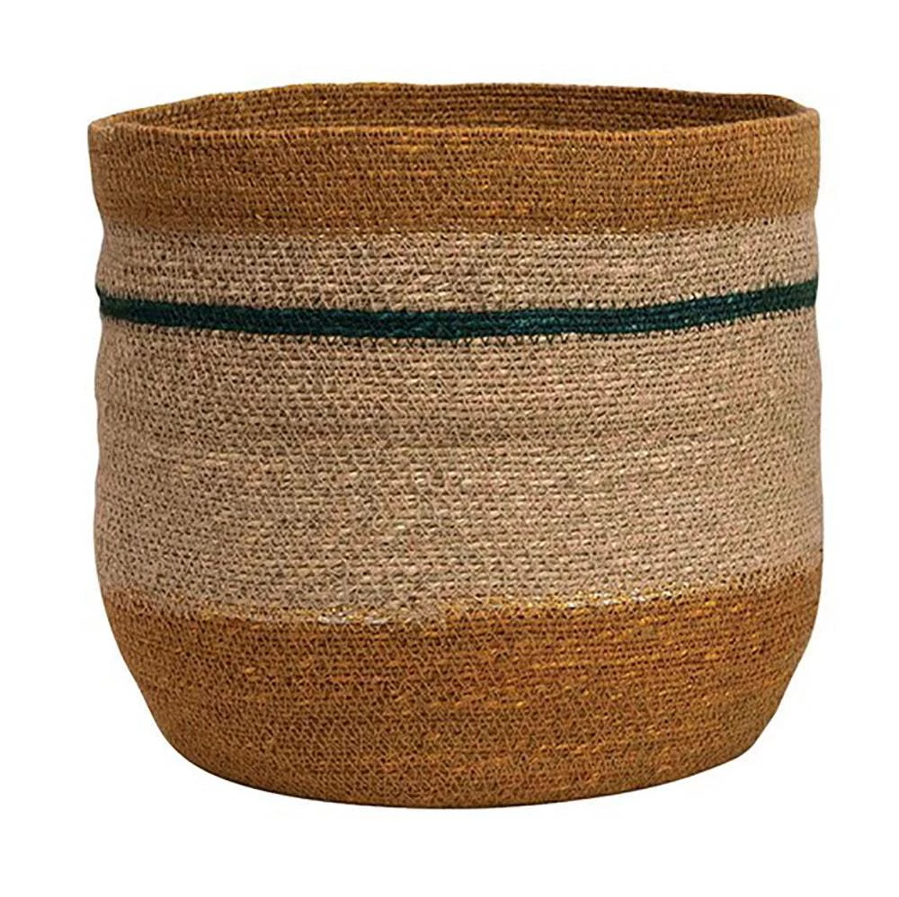 12 Inch Round Woven Natural Seagrass Striped Basket