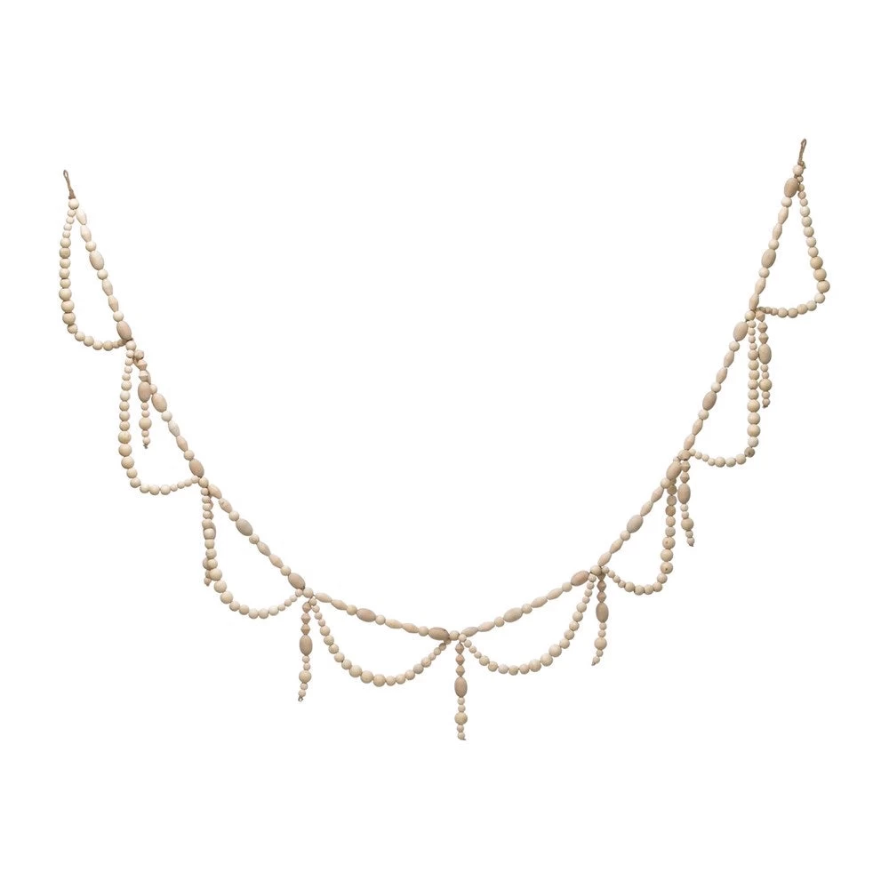 72” Paulownia Wood Bead Swag Garland, Natural