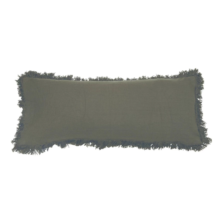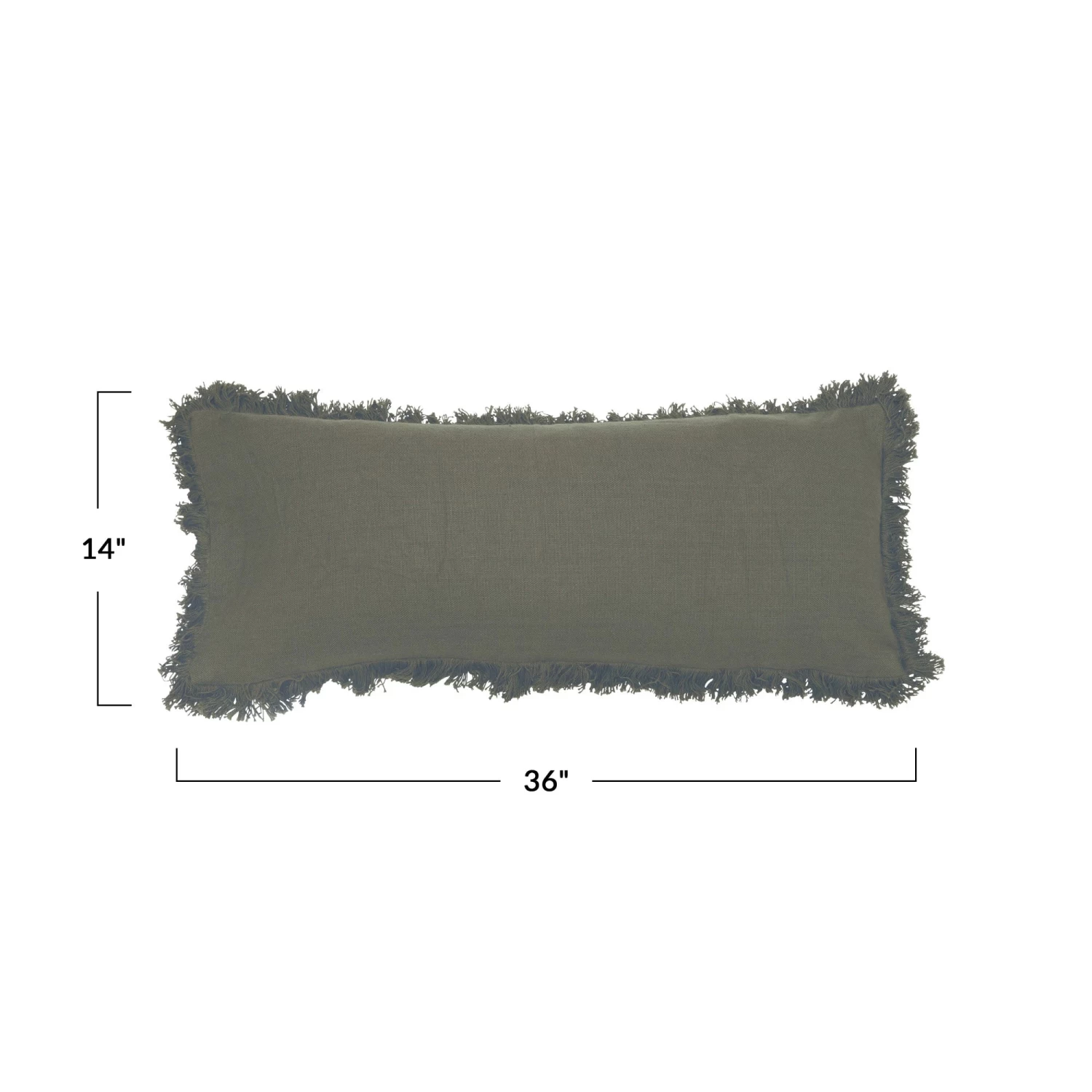 Cotton Lumbar Pillow With Eyelash Fringe, Olive