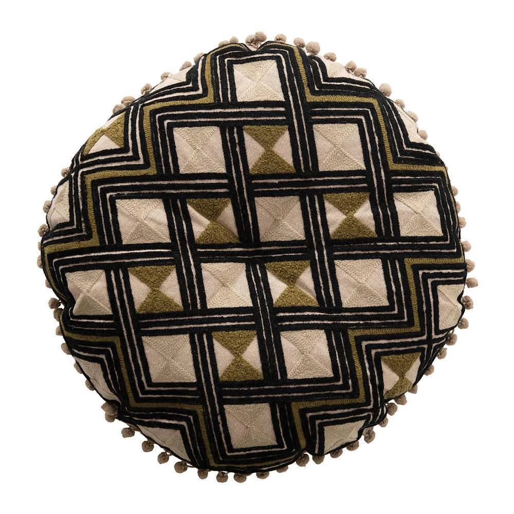 This cotton pillow instantly upgrades any couch or chair, and catches the eye effortlessly with its embroidered multi-colored pattern and fun pom poms. Made out of cotton, this pillow brings both comfort and unique style to any seating and is perfect for any boho home