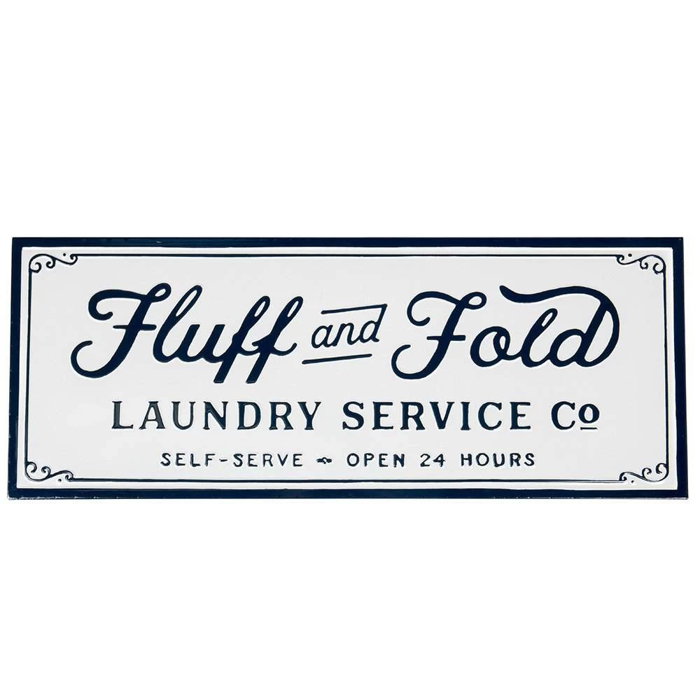 Give your laundry room a fun vibe with this Fluff and Fold Laundry Service wall decor.