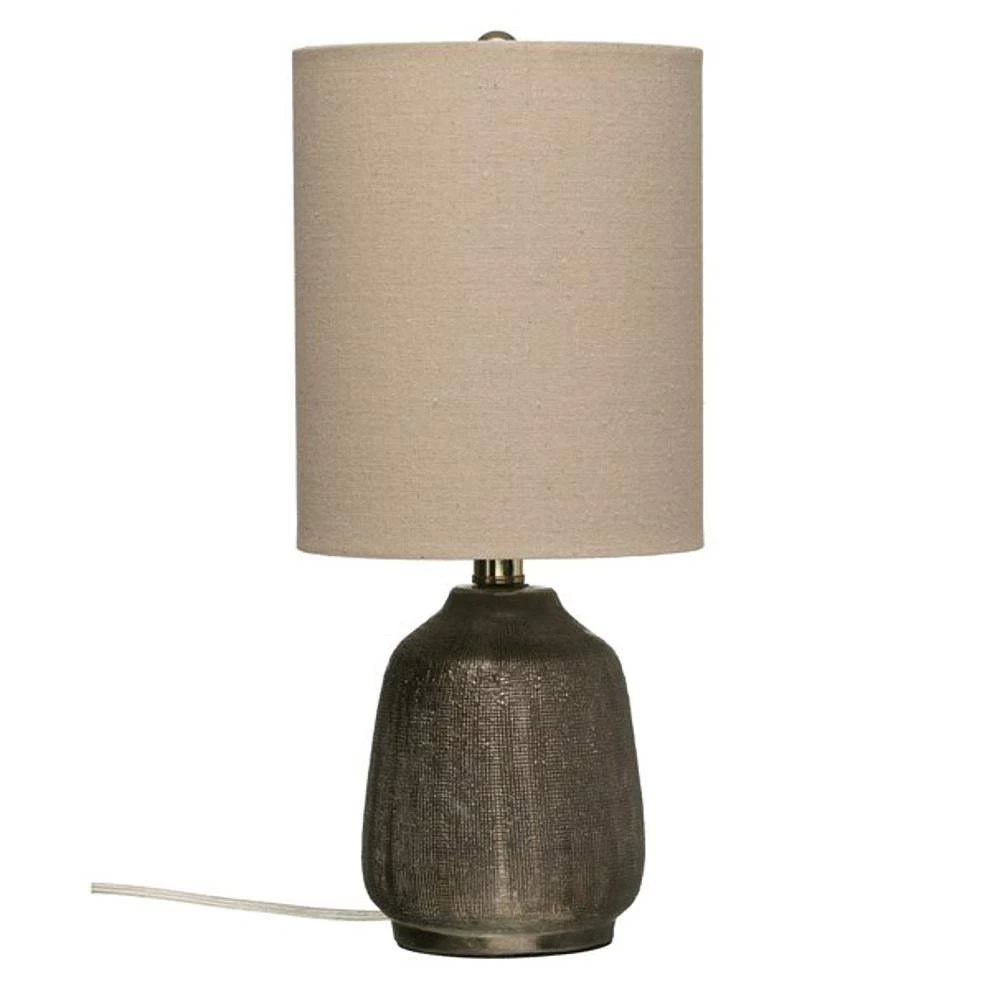 Add a fresh touch to the room decor with this terracotta table lamp. The shiny metallic base will delight as it complements the linen drum shade. Add it to a side, console or sofa table and lighten the whole room with its charm.