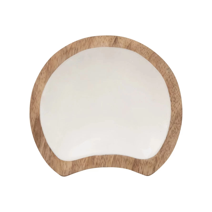 Enameled Mango Wood Spoon Rest, White