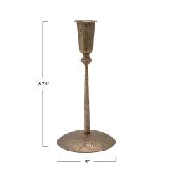 Hand-Forged Hammered Iron Taper Holder, Antique Brass Finish