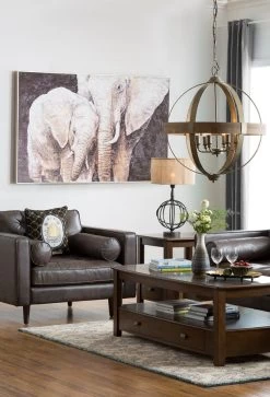 26-1/4″ Round Metal & Wood Pendant Lamp, 6 Lights (Pick Up Only)