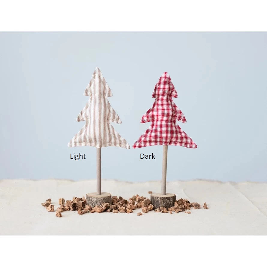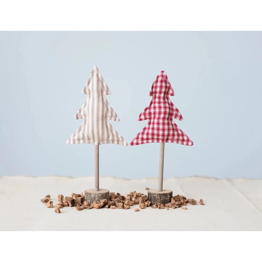 Gingham Cotton Tree With Wood Slice Base, 2 Color Options