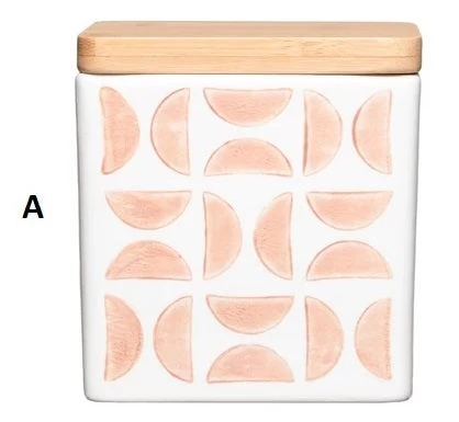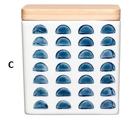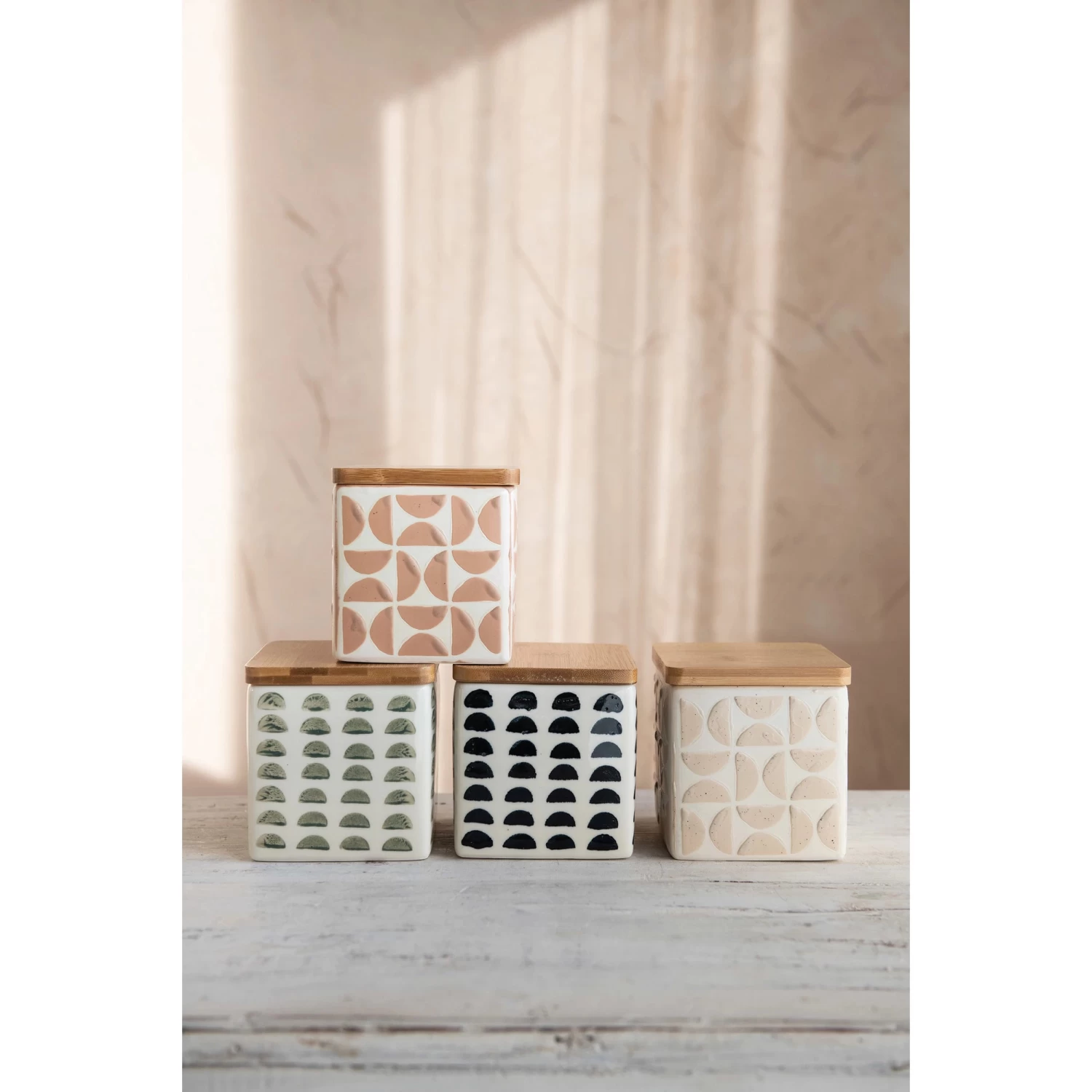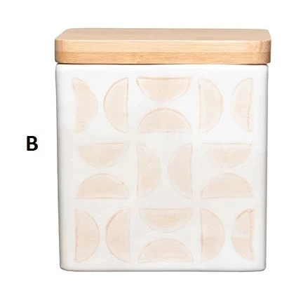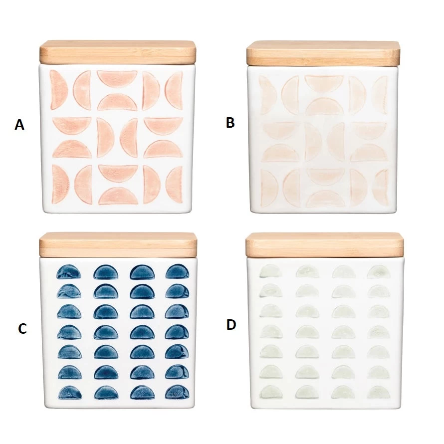 Hand-Stamped Stoneware Canisters With Bamboo Lid, 4 Color Options