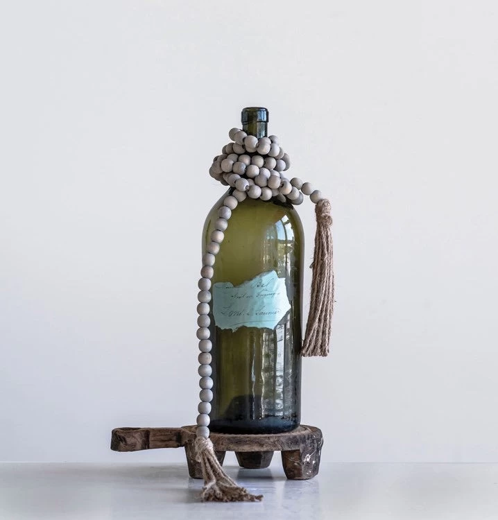 Jute & Wood Bead Garland With Tassels, Grey, 72”
