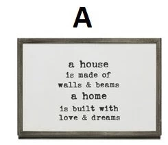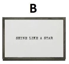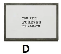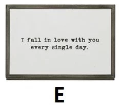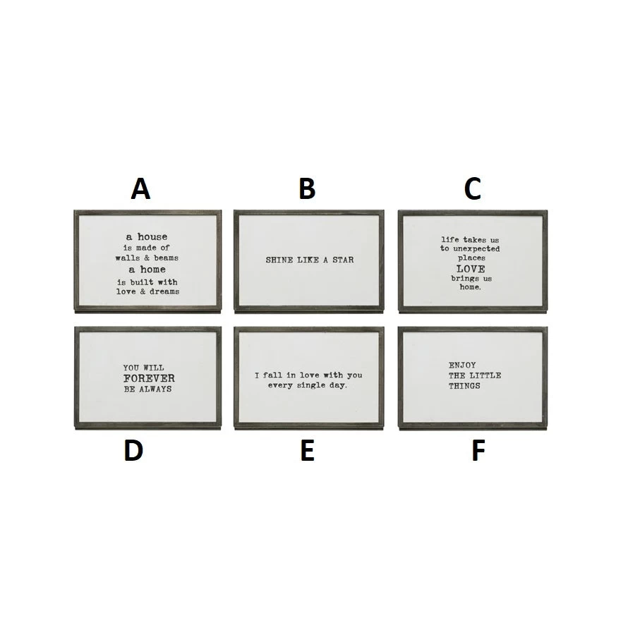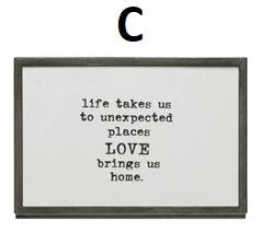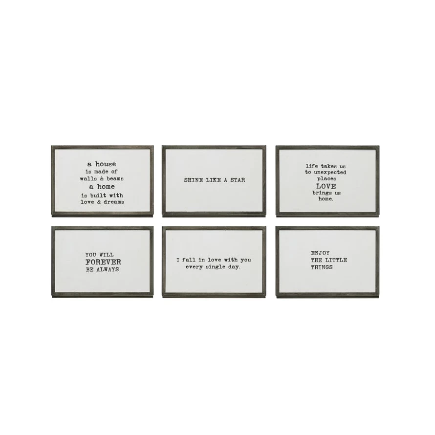 Each metal frame holds a different phrase to be enjoyed. If desired, the phrases can be replaced with precious photos of family and friends. To create a unique setting, keep the three favorite phrases and place photos in the other three. Mix them together on a tabletop for an enjoyable combination of media.