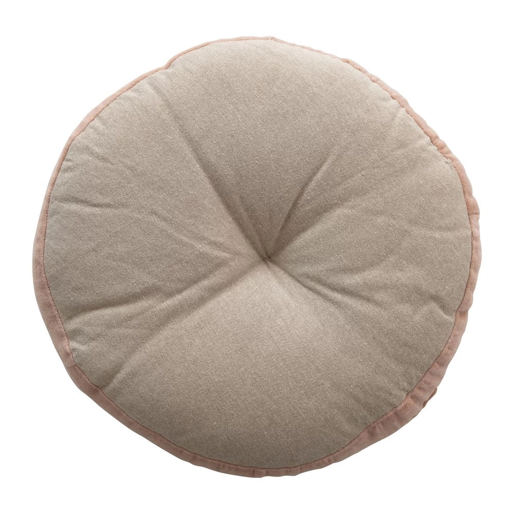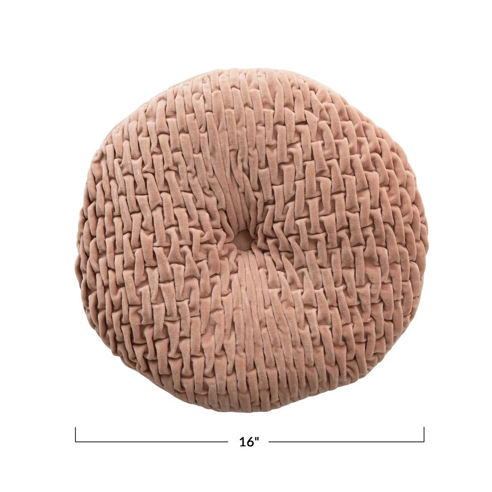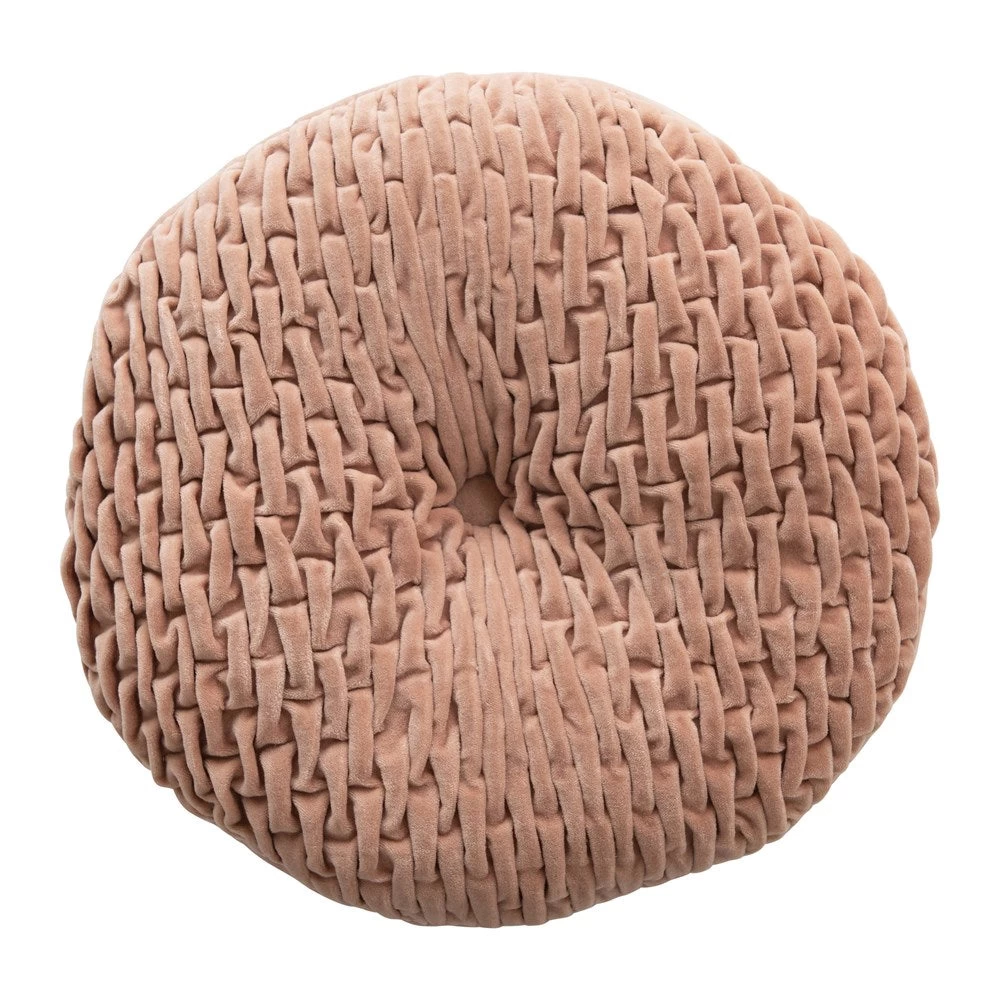 Round Cotton Velvet Pillow With Woven Pattern, Blush Color