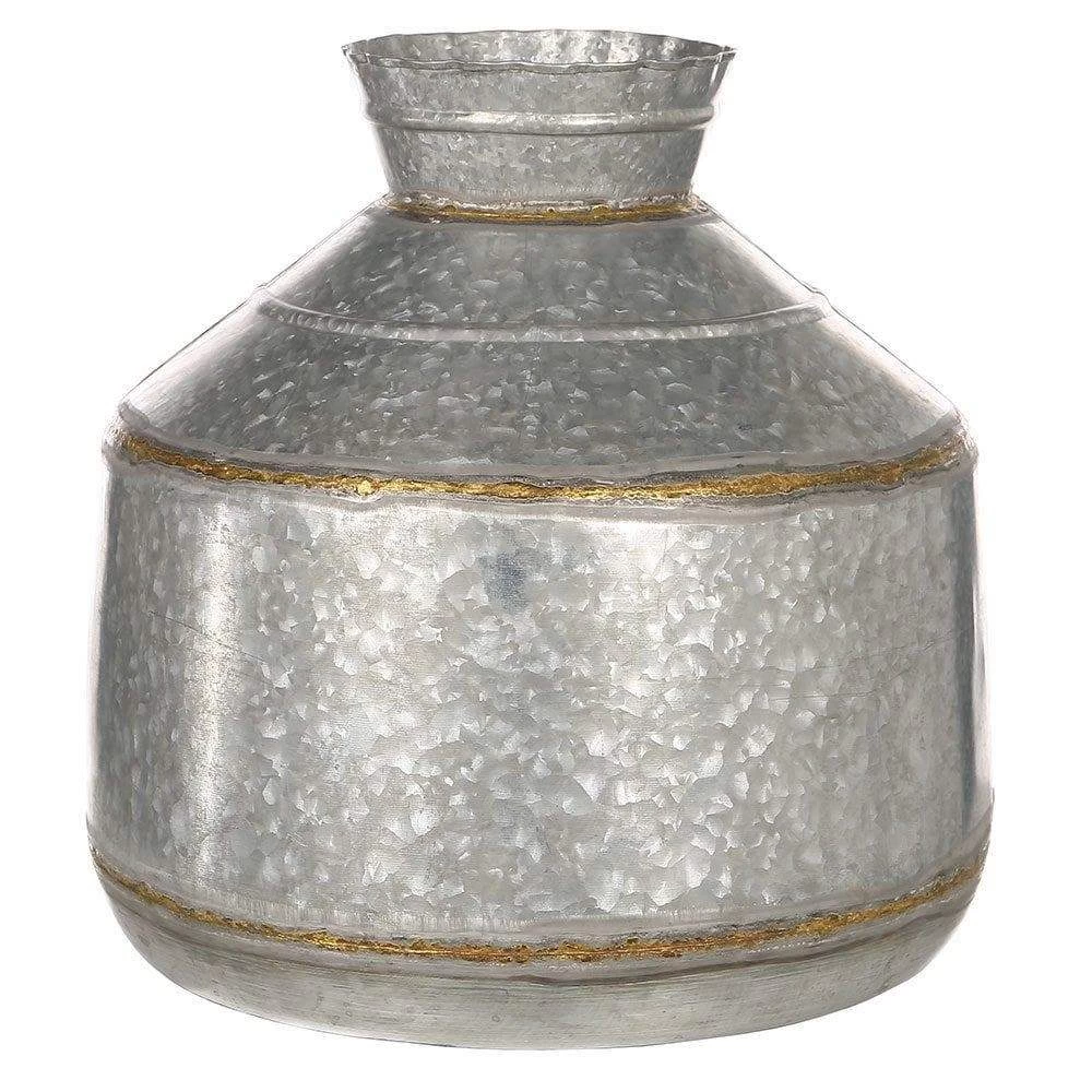 Update your home decor this season with our round galvanized metal container from Creative Co-op.