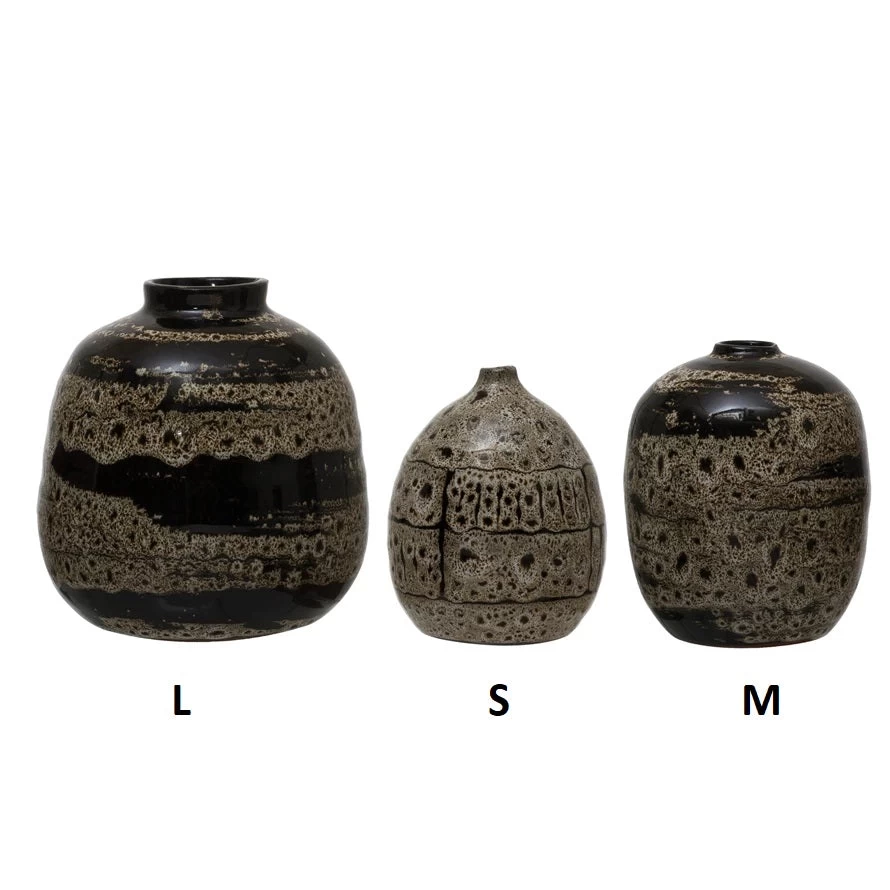 Terra-cotta Vase, Brown With Reactive Glaze, 3 Size Options