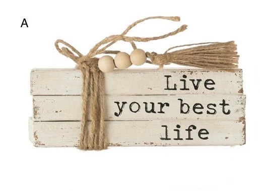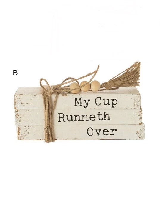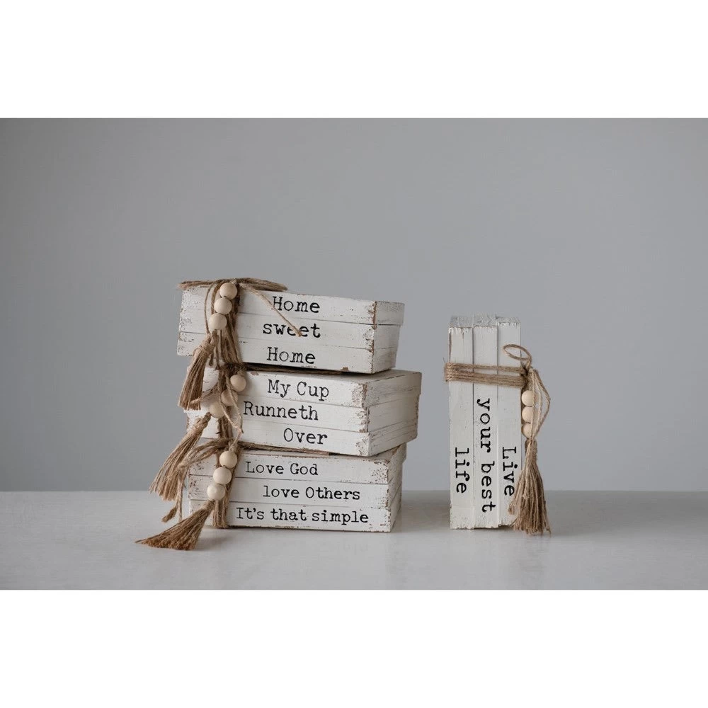 Wood Block Books With Saying & Jute Tie, 4 Style Options